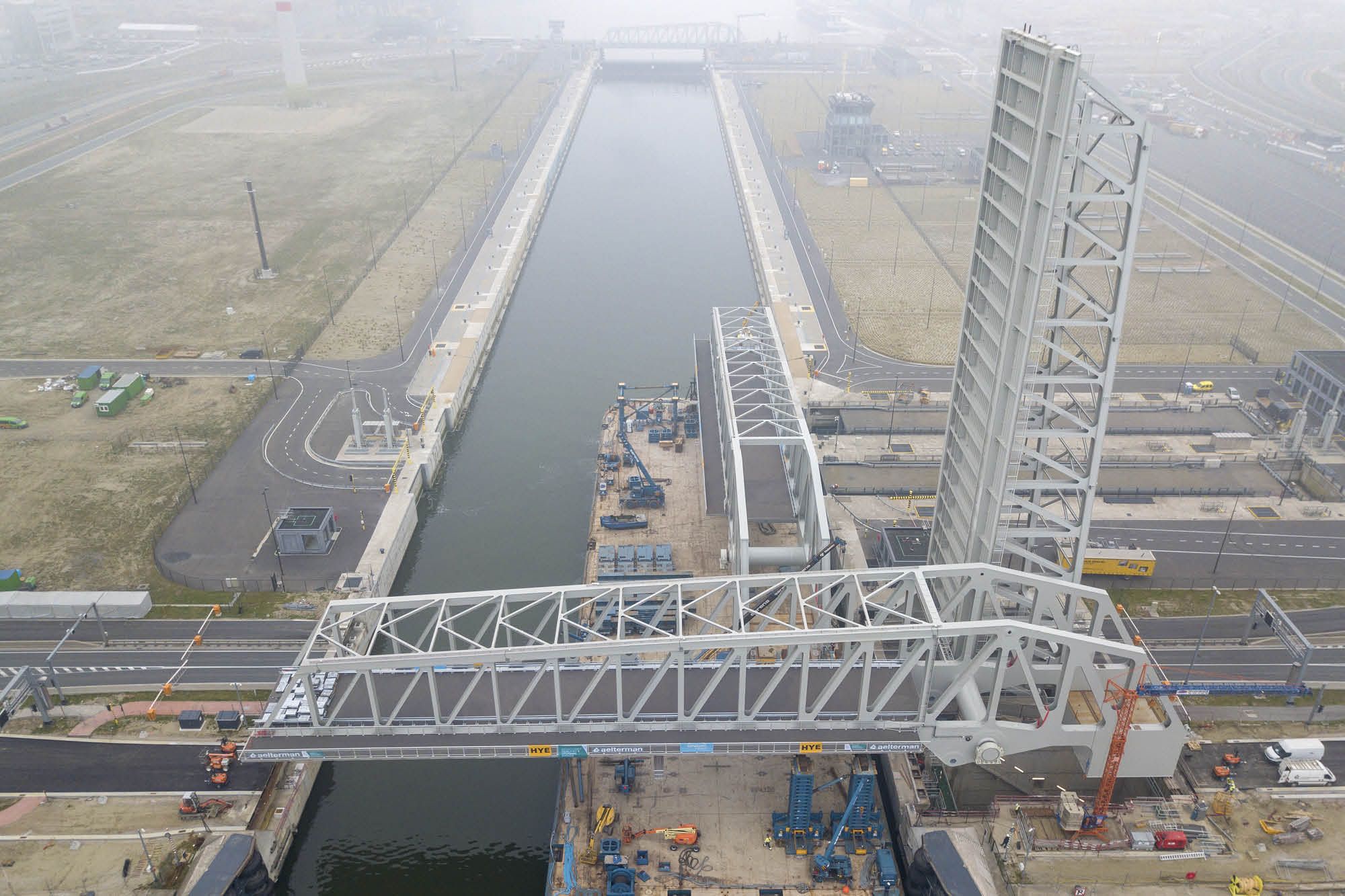 Deux ponts basculants en acier franchissent depuis peu la nouvelle écluse de Kieldrecht dans le port d’Anvers. Destinées au trafic routier, elles viennent s’ajouter aux ponts déjà achevés pour le trafic mixte (routier, ferroviaire et portuaire). Apporter une réponse à la question de la fatigue fut l’un des principaux défis lors de la conception. Il s’agit de ponts basculants en équilibre dont le contrepoids est logé dans une fosse profonde. Leur structure porteuse est constituée d’une poutre en treillis.