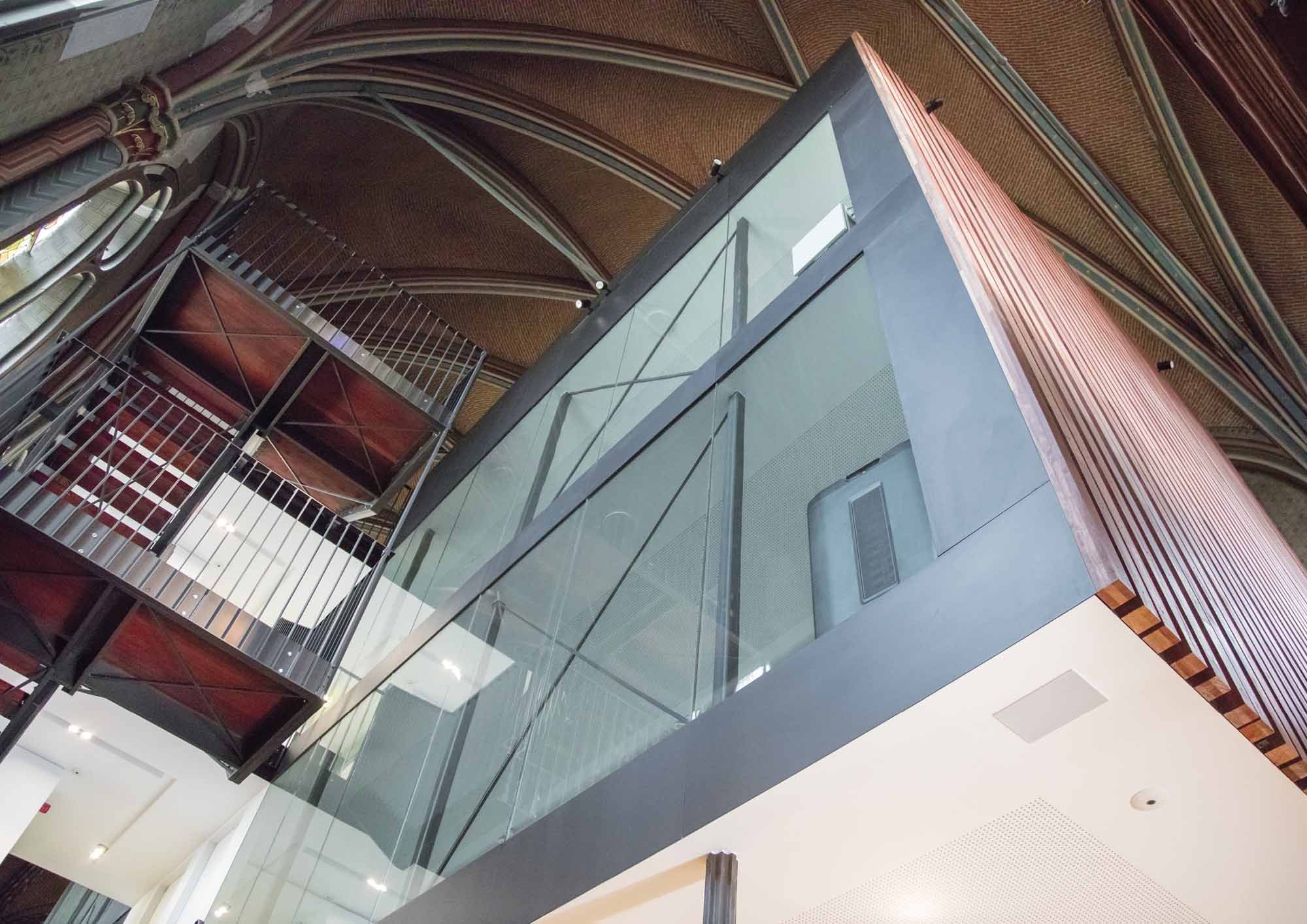 Caisson d'acier au coeur de l'église