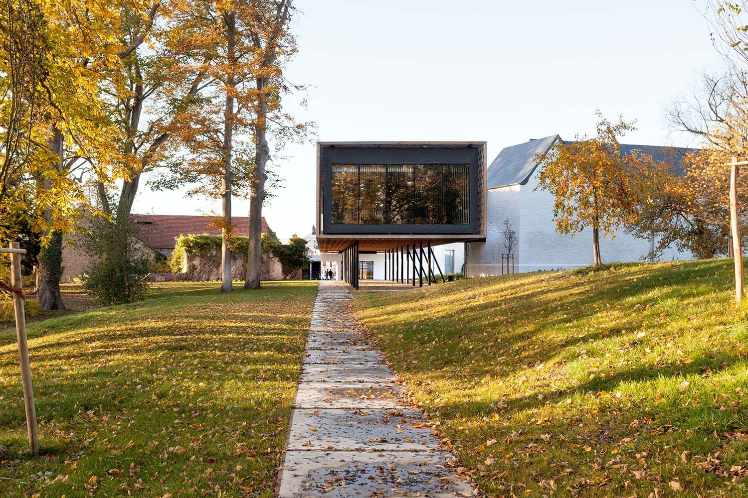 Un volume flottant porté par des colonnes en acier au diamètre limité