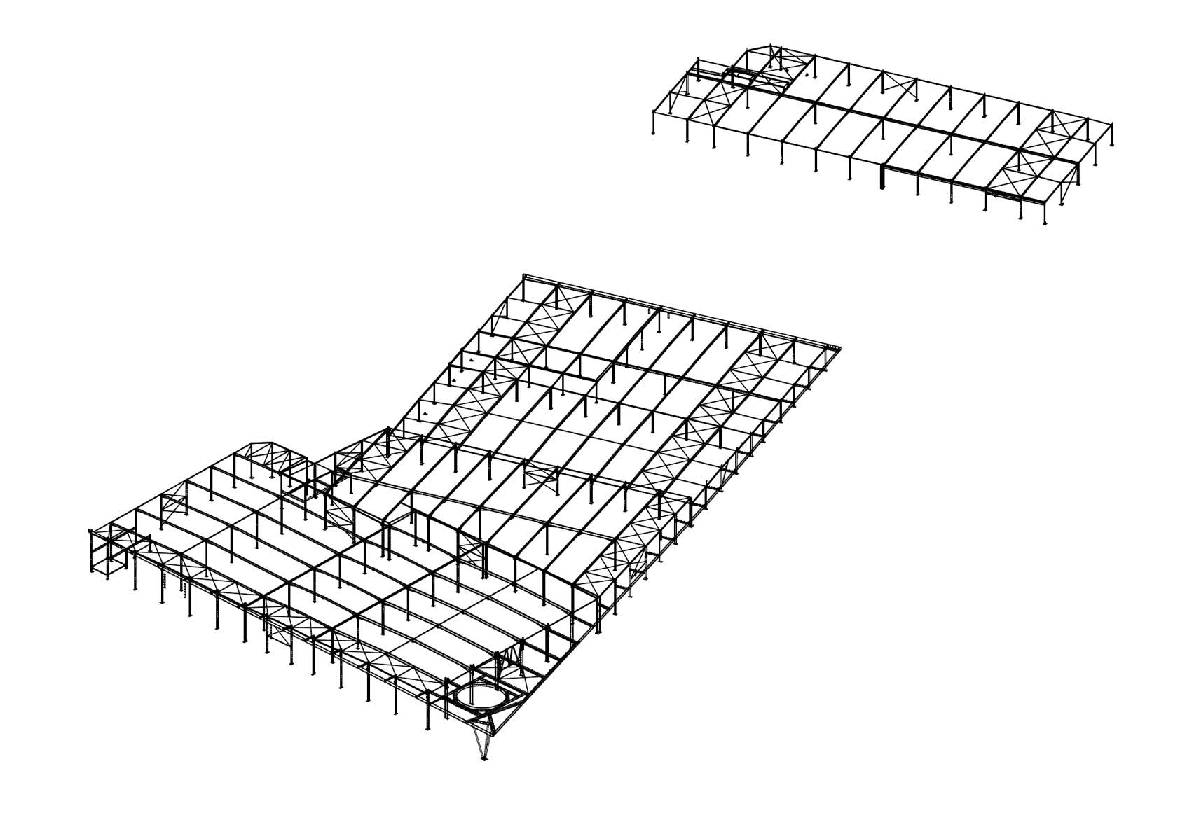 De staalstructuur bestaat uit profielstaal, kwaliteit 235 en 355. De delen zijn gestraald, geprimerd en gelakt in een verflaag van zinkfosfaat. De delen langs de buitenzijde zijn gegalvaniseerd en gelakt in een twee componentensysteem op basis van PU. Vlak staal werd gebruikt voor de vervaardiging van alle verbindingsstukken, kop- en voetplaten van de structuur.
