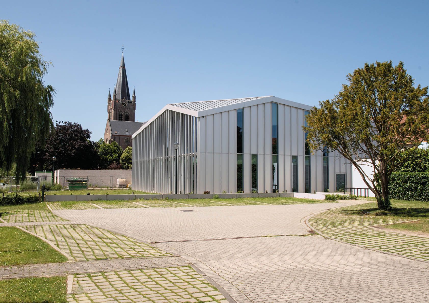 De dorpskern van Jabbeke wordt dezer dagen volledig heraangelegd. Eén van de speerpunten in de transformatie is het gemeentehuis, dat grondig gerenoveerd en uitgebreid werd. Achter het bestaande hoofdvolume met zijn karakteristieke baksteenfaçade verrees een modern glazen aanbouw.